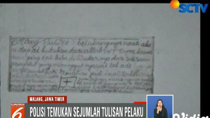 Tulisan bernada kemarahan dan dendam yang diduga goresan tangan pelaku juga ditemukan. Tulisan ada pada kertas dan bahkan di bagian tubuh korban, yaitu di bagian telapak kaki.