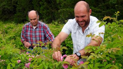 Il est à peine huit heures du matin et une odeur sucrée règne déjà sur tout le champ. Il y a quatre ans, Philippe Garnerone a commencé à planter là, dans la plaine, sept mille pieds de rose centifolia, cette fille de l’églantine et de la rose musquée, seule variété utilisée en parfumerie avec la rose de Damas. En cette toute fin de mai, la récolte est presque terminée. Philippe et son père, André, viennent ausculter les rosiers qui se reposent une poignée d’heures en attendant une nouvelle journée de cueillette. Sur la colline au nord-est de l’exploitation, s’étagent les élégantes maisons des quartiers Saint-Christophe et Saint-Jean, construites à la Belle Epoque par les familles de parfumeurs de Grasse, et passées ces dernières années aux