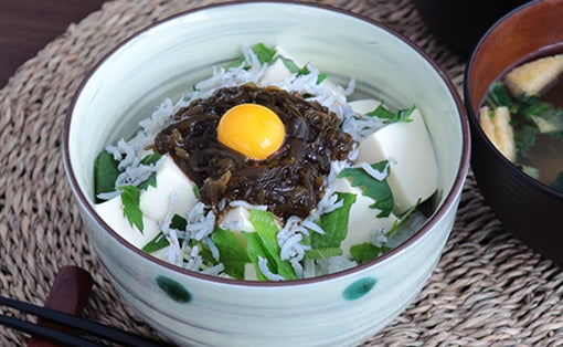 【アレンジメニュー・味付めかぶのせ豆腐丼】